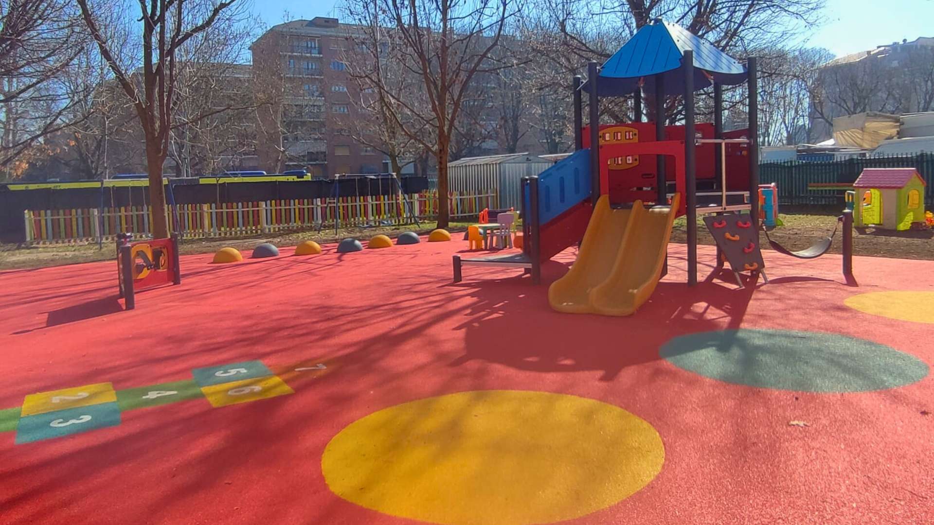 Tra le novità più significative c’è l’inserimento della “Torre Mega“, una struttura ludica progettata per stimolare le competenze tattili e motorie. Il suo valore aggiunto è la possibilità di accogliere un accompagnatore, permettendo anche ai bambini con difficoltà motorie di vivere l’esperienza del gioco in sicurezza e condivisione. Un intervento che rafforza l’idea di un cortile aperto a tutti, dove ogni bambino può sentirsi parte del gruppo.